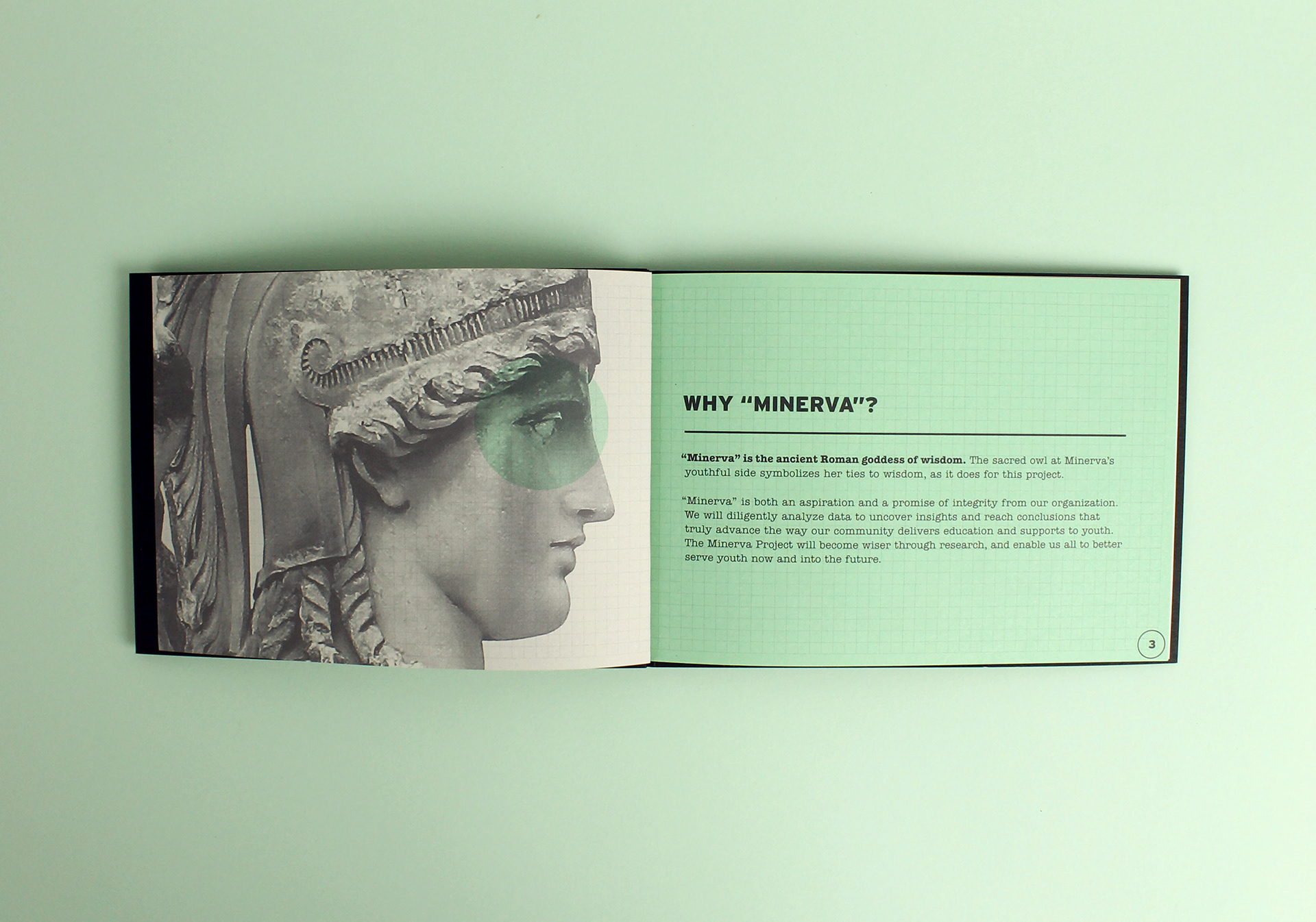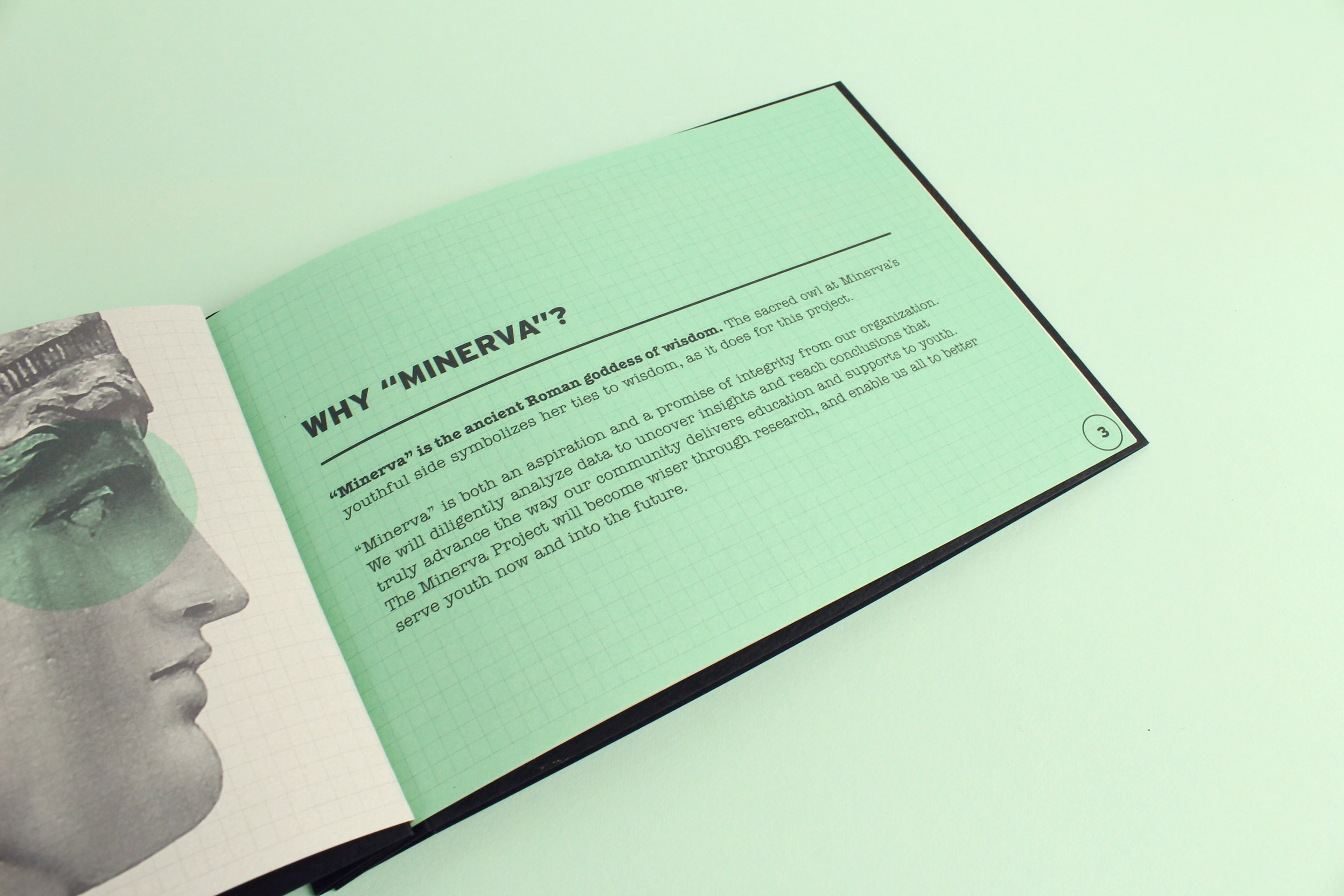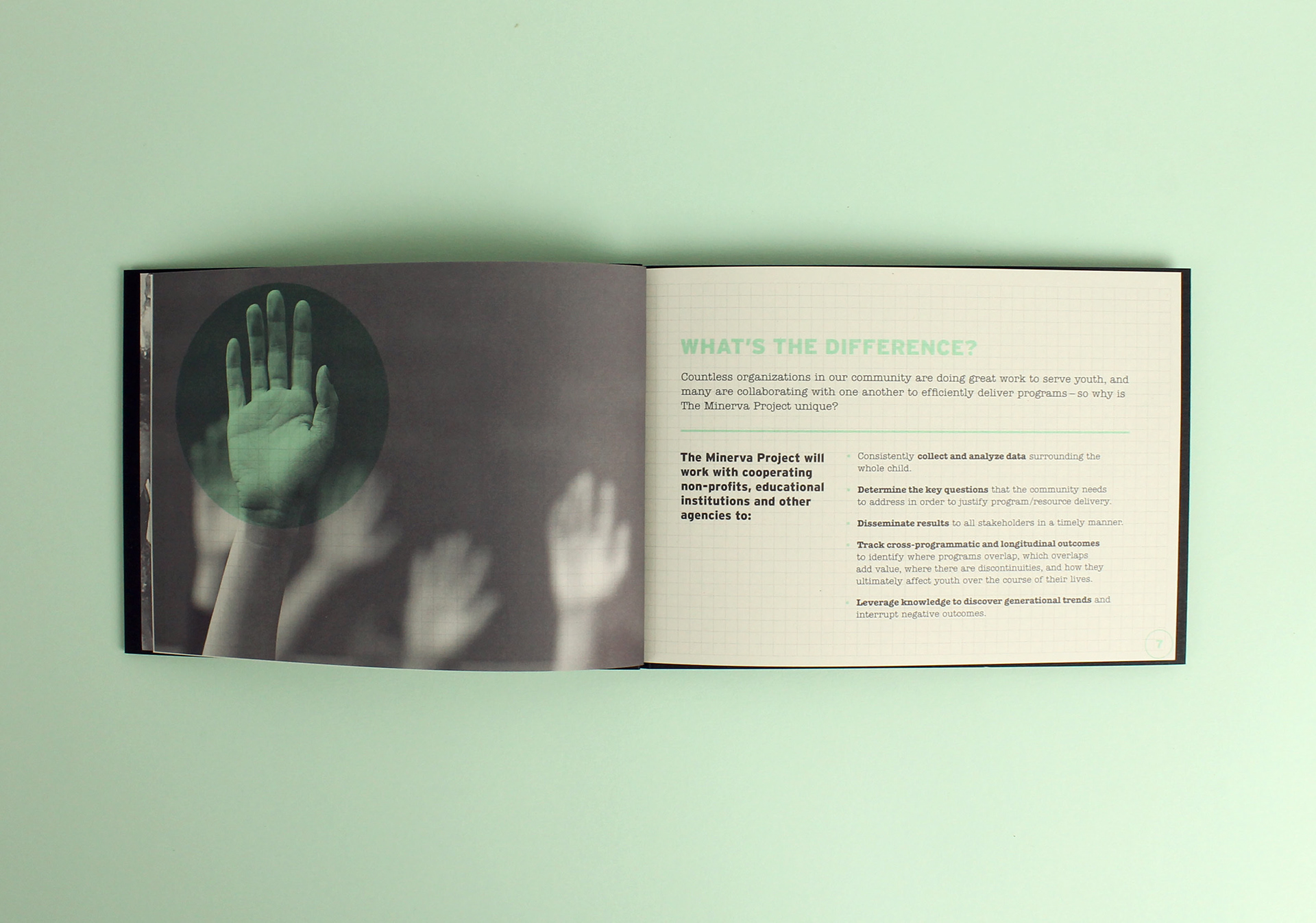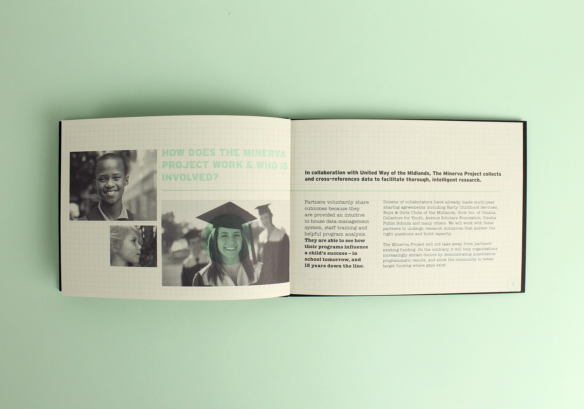 The Minerva Project is a not-for-profit organization in Omaha, Nebraska compiling data and conducting research to help everyone serving youth in our community do so efficiently and effectively. Their goal is to ensure that all children receive the right resources at the right times to have their best opportunities for success. This brochure was a direct mail piece that went out to only a select few individuals that could help raise $7 million that would go towards funding school programs proven to help students become successful.