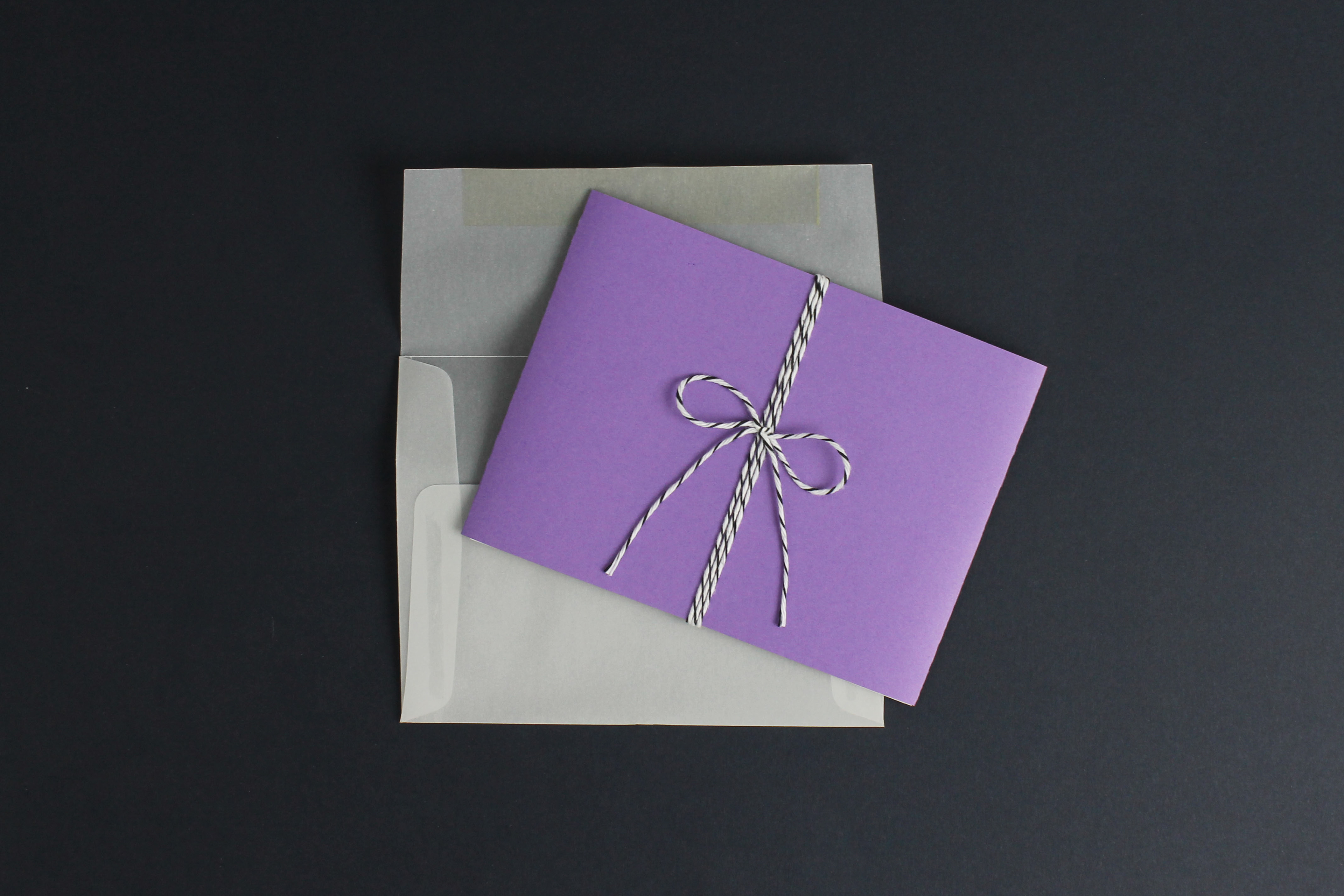 This was a wedding invitation custom designed for Corey and Jenn Spitzer. The theme of their wedding tied into the design through the color choice, and the hand illustrated tree. The invite was sent out in a translucent envelope to show off the simple baker's twine bow and purple paper that encased the actual invite and RSVP.